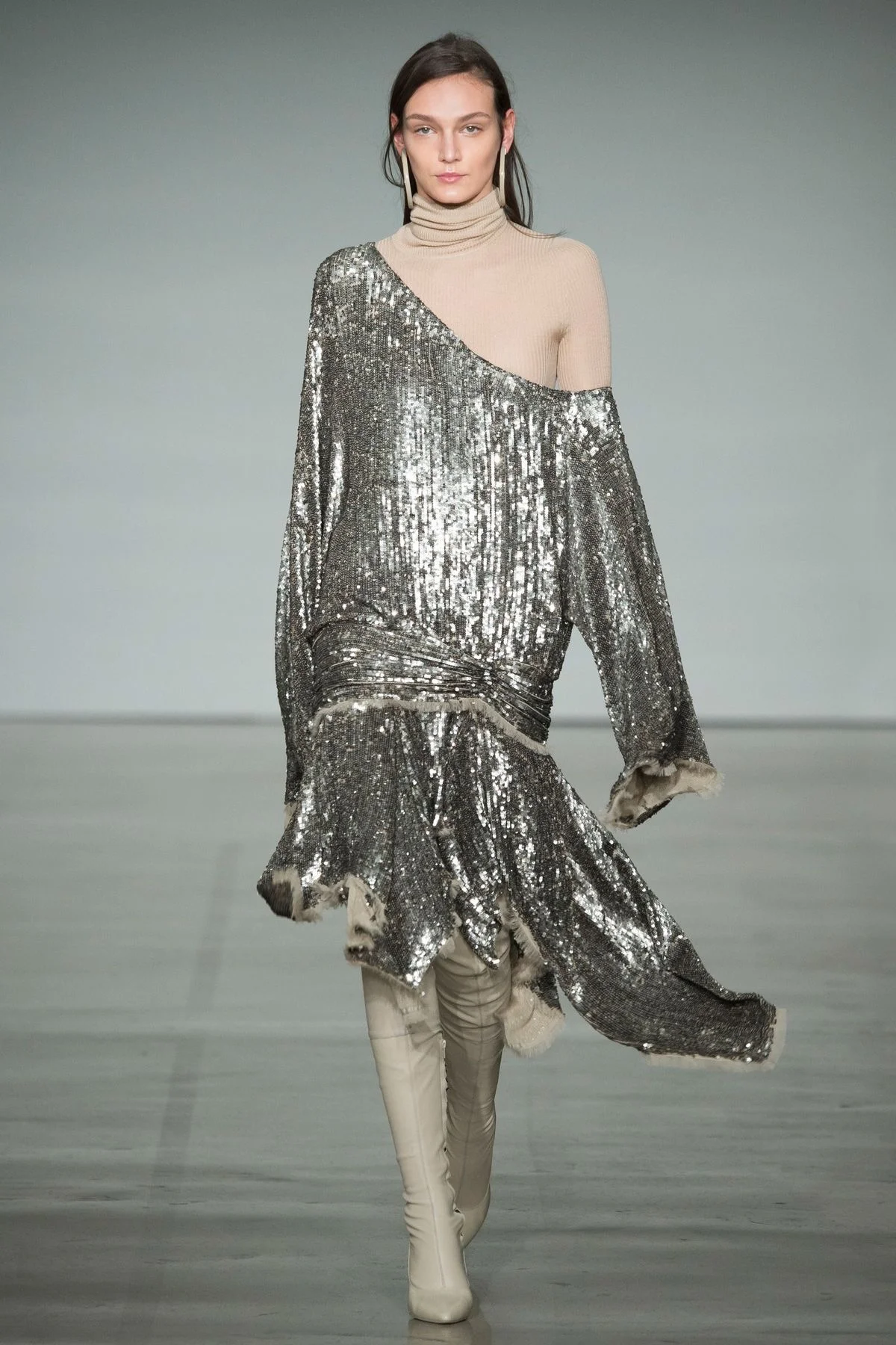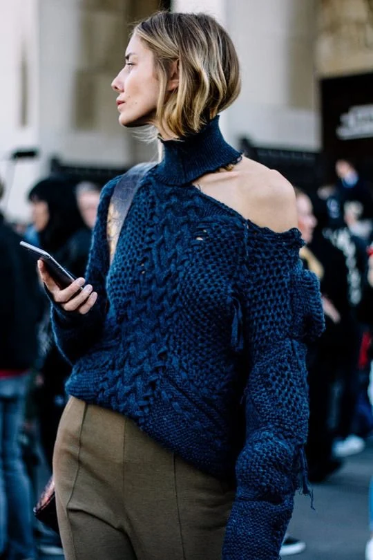 Another aspect of desconstruction is slits or cut-outs that are placed through clothing, like dresses or chunky sweaters. They add a peek-a-boo factor and show off a little skin. Who knew it was possible to make a turtleneck look sexy?