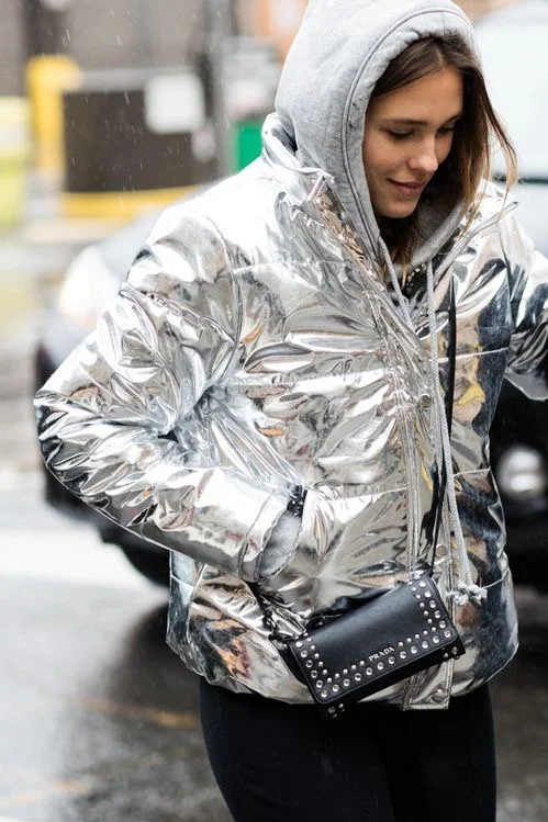 Whether it’s sequins, or metallics, silver has been stirring up this year’s fall fashion. If you want to stand out or shine (literally and figuratively), this is one trend you want to try. We are no strangers to the staple sequin dress that we all love and have wore once or maybe more; that is here to stay. However, I am loving how silver is being reworked into other parts of our wardrobe pieces. For example, you can mix your jeans with a holographic silver bootie, or handbag. You can really stand out with a metallic puffer coat or trench. My favorite is the stand out silver pants, metallic shine denim, and sparkly skirts. These items can be worn with almost anything.