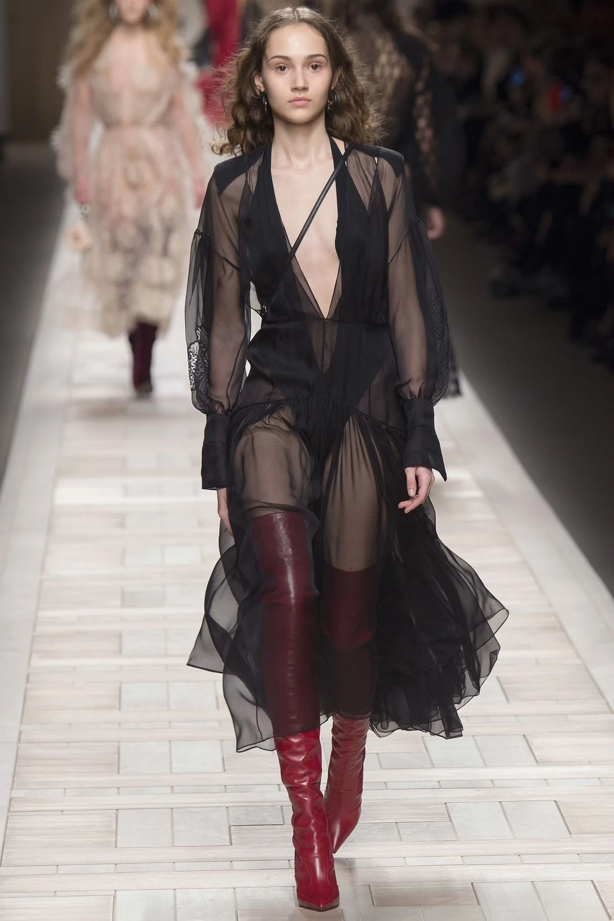 This trend is all about sex appeal. We were wearing it in the spring and summer, but the key to keeping it current this season is layering. You can achieve this by wearing a sheer top or bodysuit with a blazer or leather jacket. Like I stated before, you can keep some of your strapless or tank garments by wearing a sheer top underneath. We can still wear our sheer dresses and pants by adding over-the-knee boots, tunic sweaters, or long jackets for more bodycoverage.